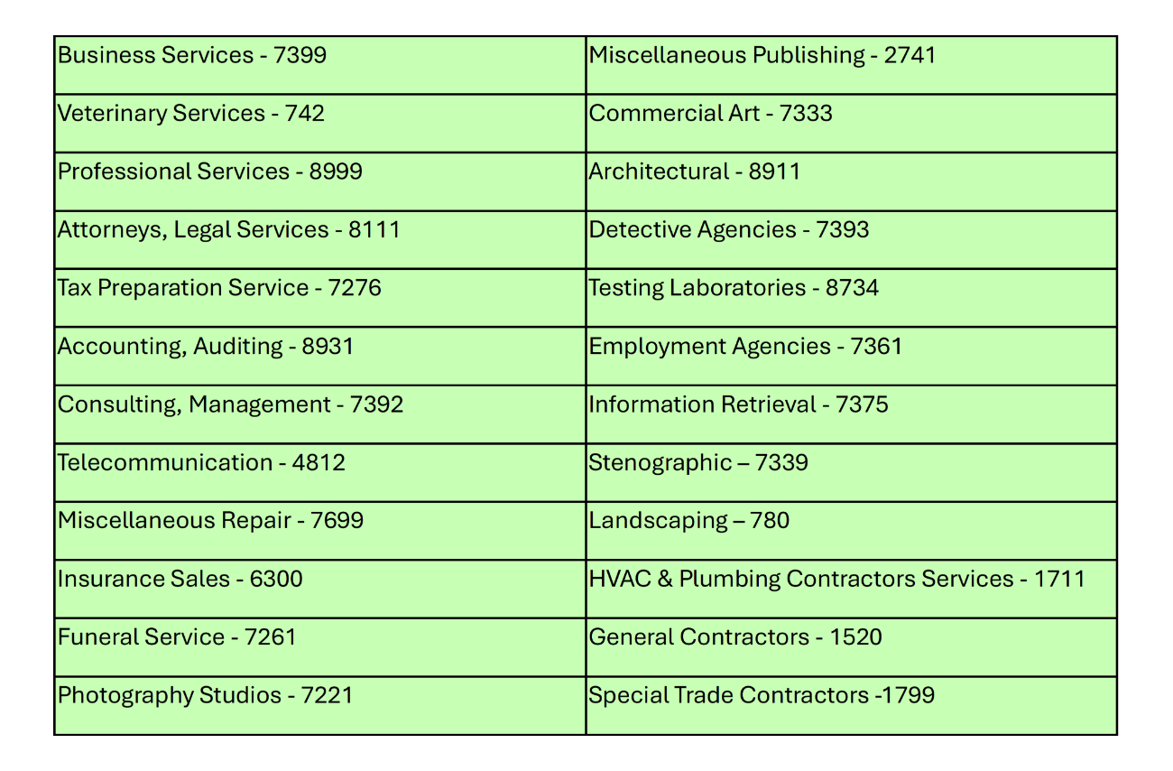 Merchants within the eligible MCCs below who sign up for Services Growth, or switch from Starter or Essentials to Services Growth, will receive their first 90 days free.